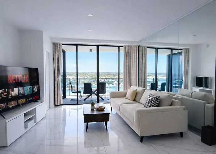 Gold Coast Hockey Centre liegt in einer Entfernung von etwa 10 Fahrminuten von diesem Apartment, während Southport Sharks 15 Minuten Fahrt von der Unterkunft entfernt liegt. Das Stadtzentrum ist nur 5 km entfernt. Der Flughafen Gold Coast liegt 45 km vom Apartment entfernt. Fruit Shop ist auf jeden Fall einen Besuch wert und liegt unter anderem ungefähr 400 Meter von der Ferienwohnung 3BR Skyline & Sunshine House - Waterfront Biggera Bliss entfernt.